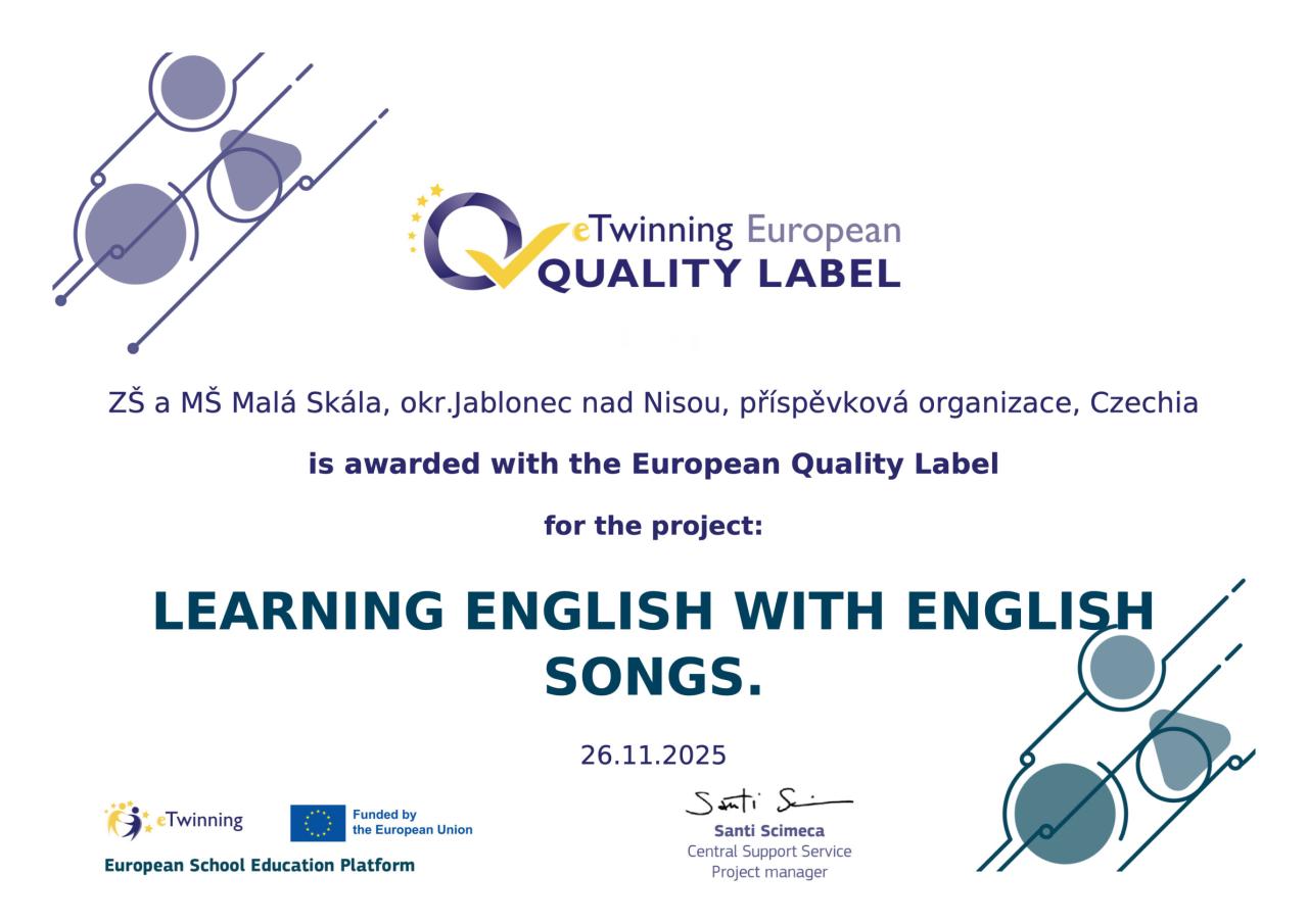 V Praze jsme 28. 11. převzali ocenění od Domu zahraniční spolupráce. Náš projekt získal i evropské ocenění kvality. Je to velká, upřímná radost a potvrzení, že i malý tým může mít evropský dopad. Děkujeme žákům a partnerským školám za skvělou spolupráci.