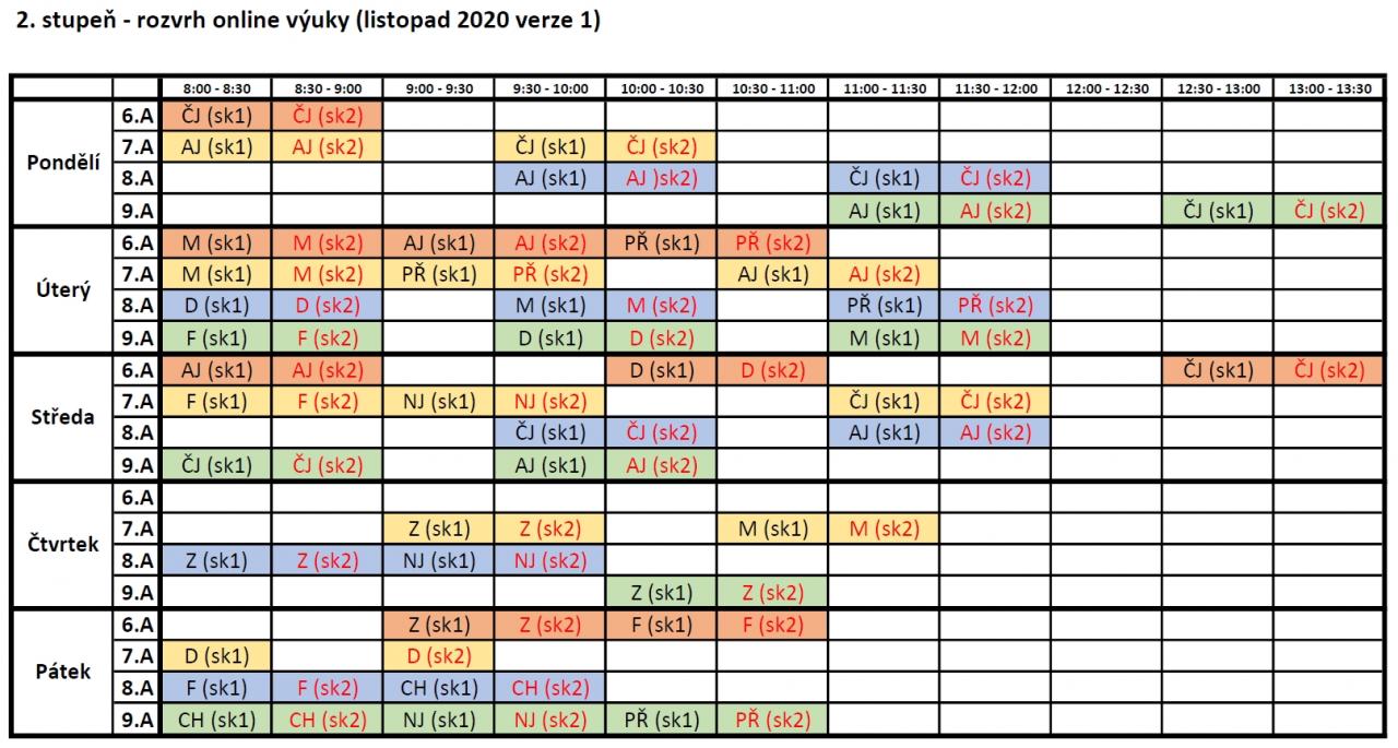 Rozvrh distanční online výuky