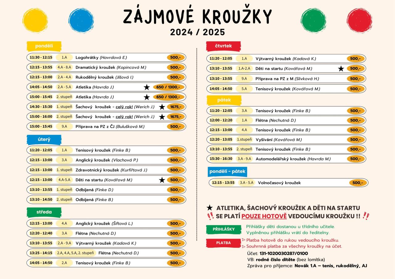 ZŠ - Zájmové kroužky 2024/25